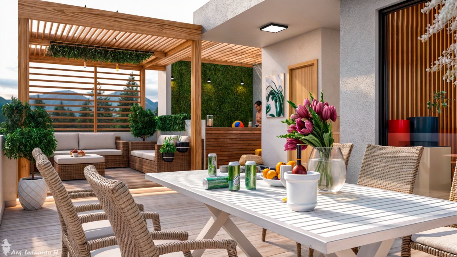 El proyecto cuenta con dos áreas sociales independientes en cada bloque, que ofrecen vistas privilegiadas hacia el Hospital HOMS y el Parque de Los Álamos.