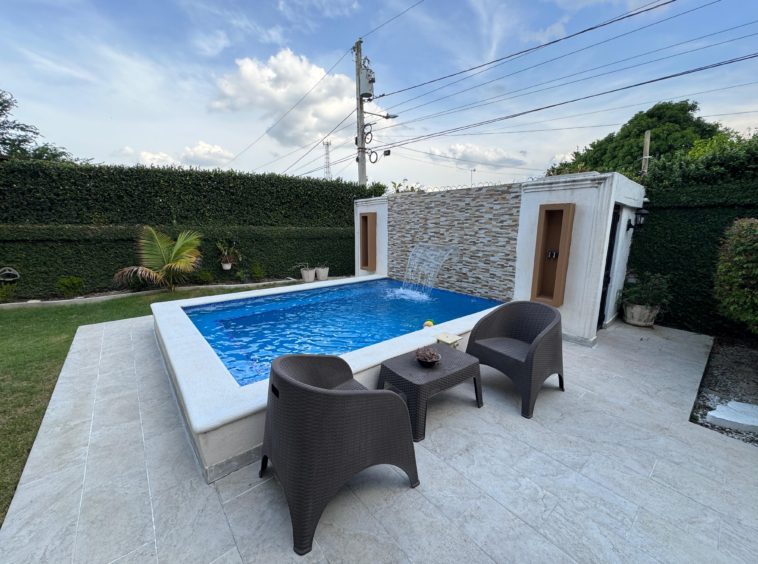 Esta majestuosa residencia combina elegancia, confort y exclusividad en cada detalle. Con un solar de 714.50 m² y 497.20 m² de construcción, ofrece amplios espacios diseñados para el disfrute familiar y social. Su primer nivel impresiona con áreas abiertas que integran sala, comedor y cocina de lujo, además de una terraza techada con jardín y un picuzzi privado para momentos únicos. En el segundo nivel, la suite principal con balcón, baño de ensueño y walk-in closet se convierte en el refugio perfecto, acompañado de habitaciones secundarias igualmente cómodas y modernas. Todo en una ubicación privilegiada, donde la tranquilidad se combina con la cercanía a lo que necesitas para vivir con el estilo de vida que mereces.
