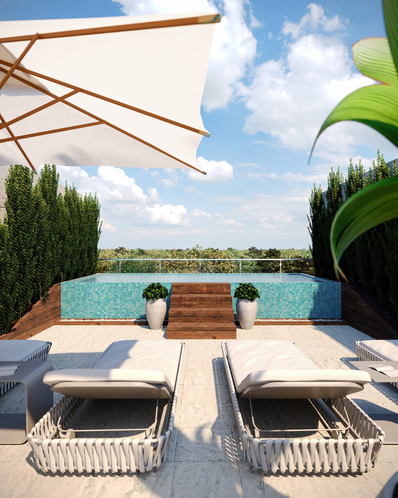 Contando con áreas recreativas, BBQ, recepción climatizada y amueblada, Terraza